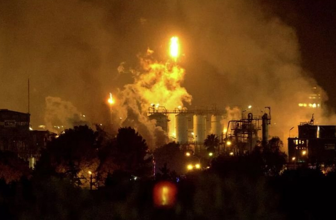 一個煉油廠突發(fā)爆炸,火苗瞬間變得十分猛烈,蔓延整個工廠,一路燒到燃料儲存庫,整片天地淪為火葬場,超過100人絕望尖叫逃生,最終活活燒死!
