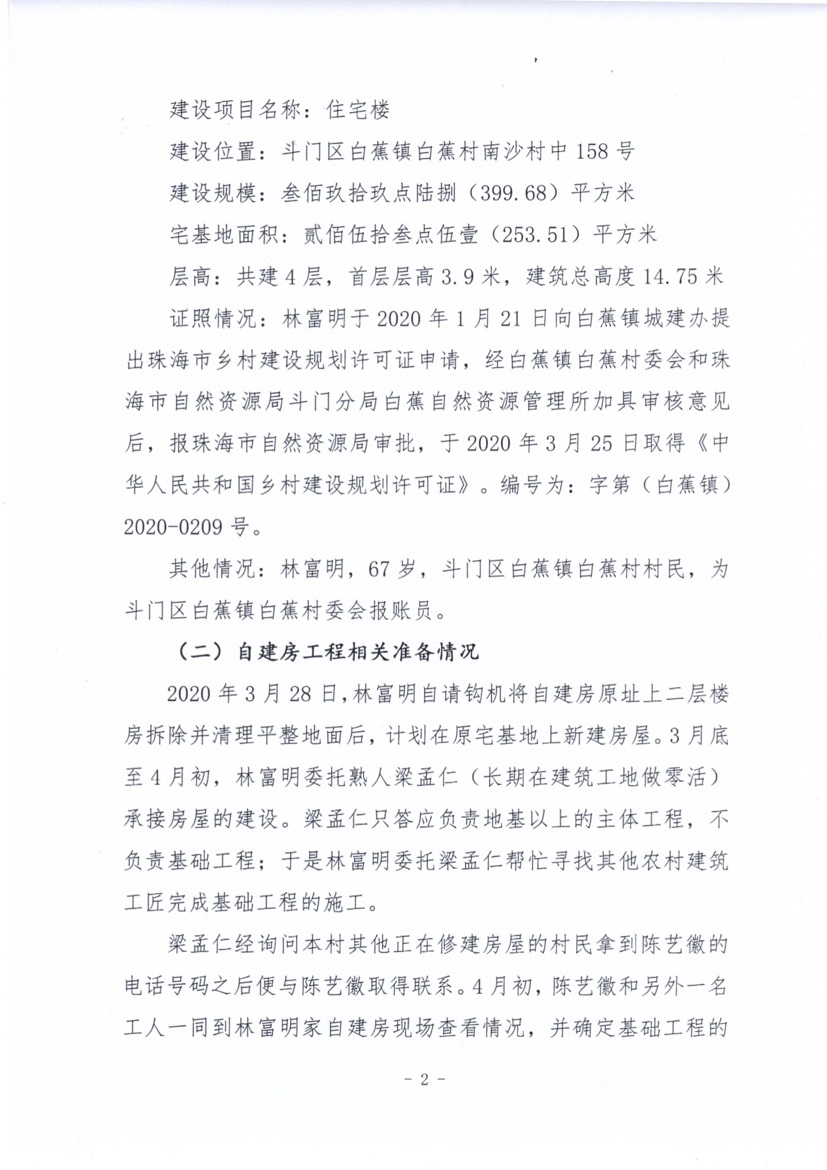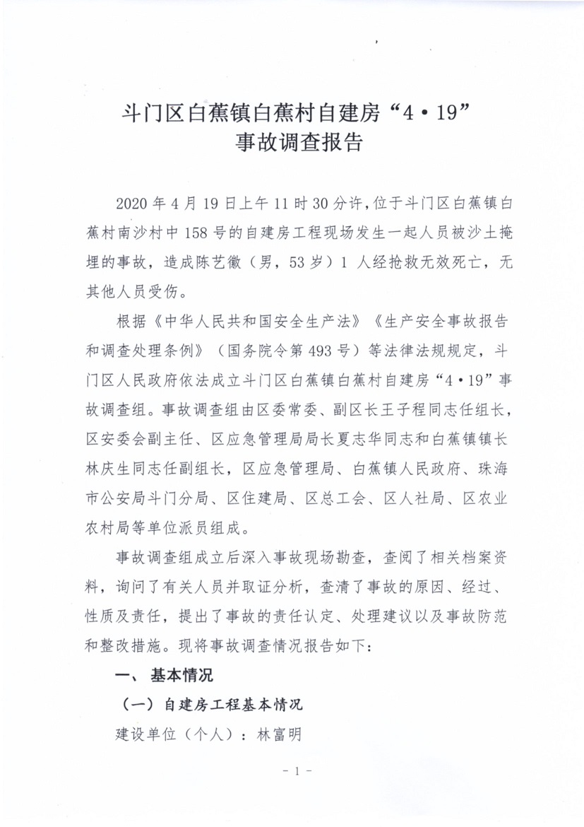 斗門區(qū)白蕉鎮(zhèn)白蕉村自建房“4·19”事故調(diào)查報告