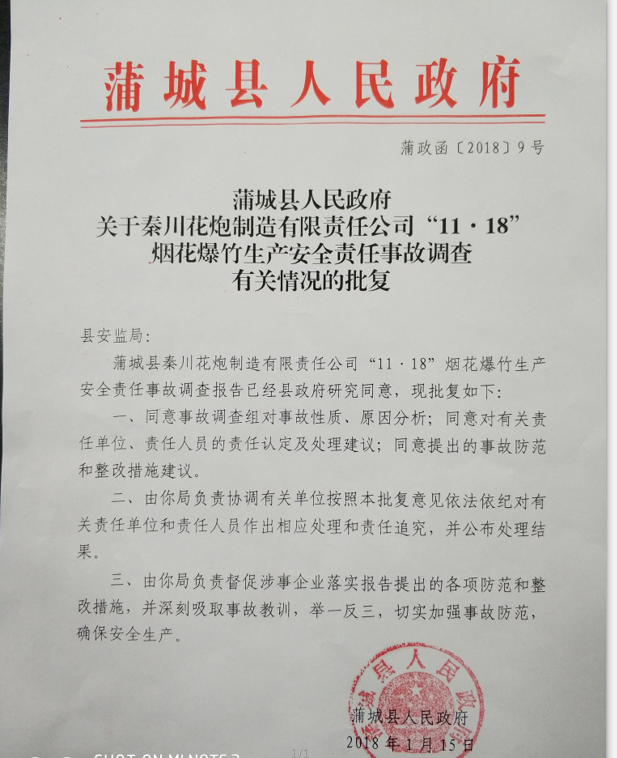 蒲城縣秦川花炮制造有限責(zé)任公司“11?18”煙花爆竹一般生產(chǎn)安全責(zé)任事故調(diào)查報(bào)告