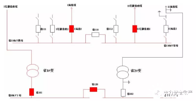 事發(fā)項目為某公司110千伏某變電站110千伏配電裝置改造,改造內(nèi)容為更換110千伏室內(nèi)敞開式手車斷路器,施工中標單位為某集團有限公司電力安裝分公司(省管產(chǎn)業(yè)單位,簡稱“安裝分公司”)。為不影響重要用戶供電,改造期間變電站采用Ⅰ紅旗省府線直接串帶省1#變、Ⅱ鳳省線直接串帶省2#變的過渡方式運行。6月12日改造完成后,110千伏母線恢復(fù)運行。(運行方式見圖1、圖2)