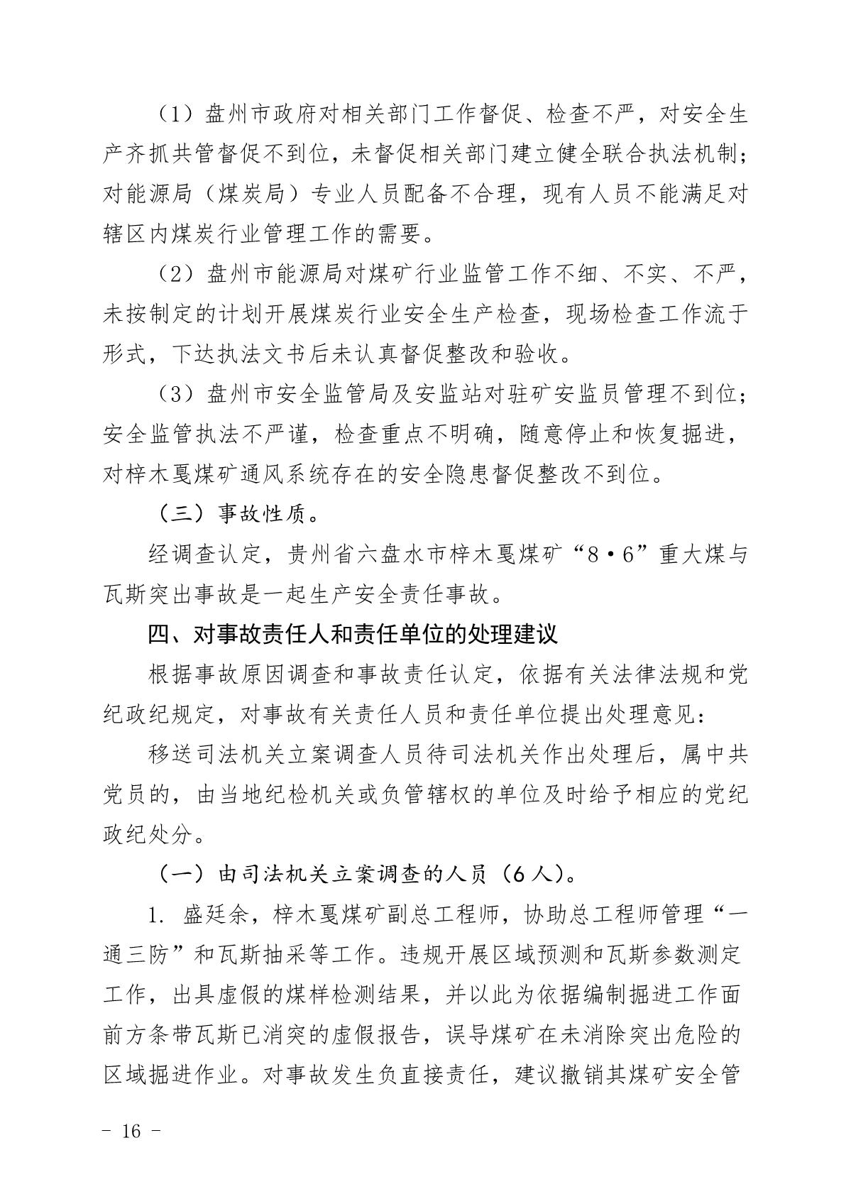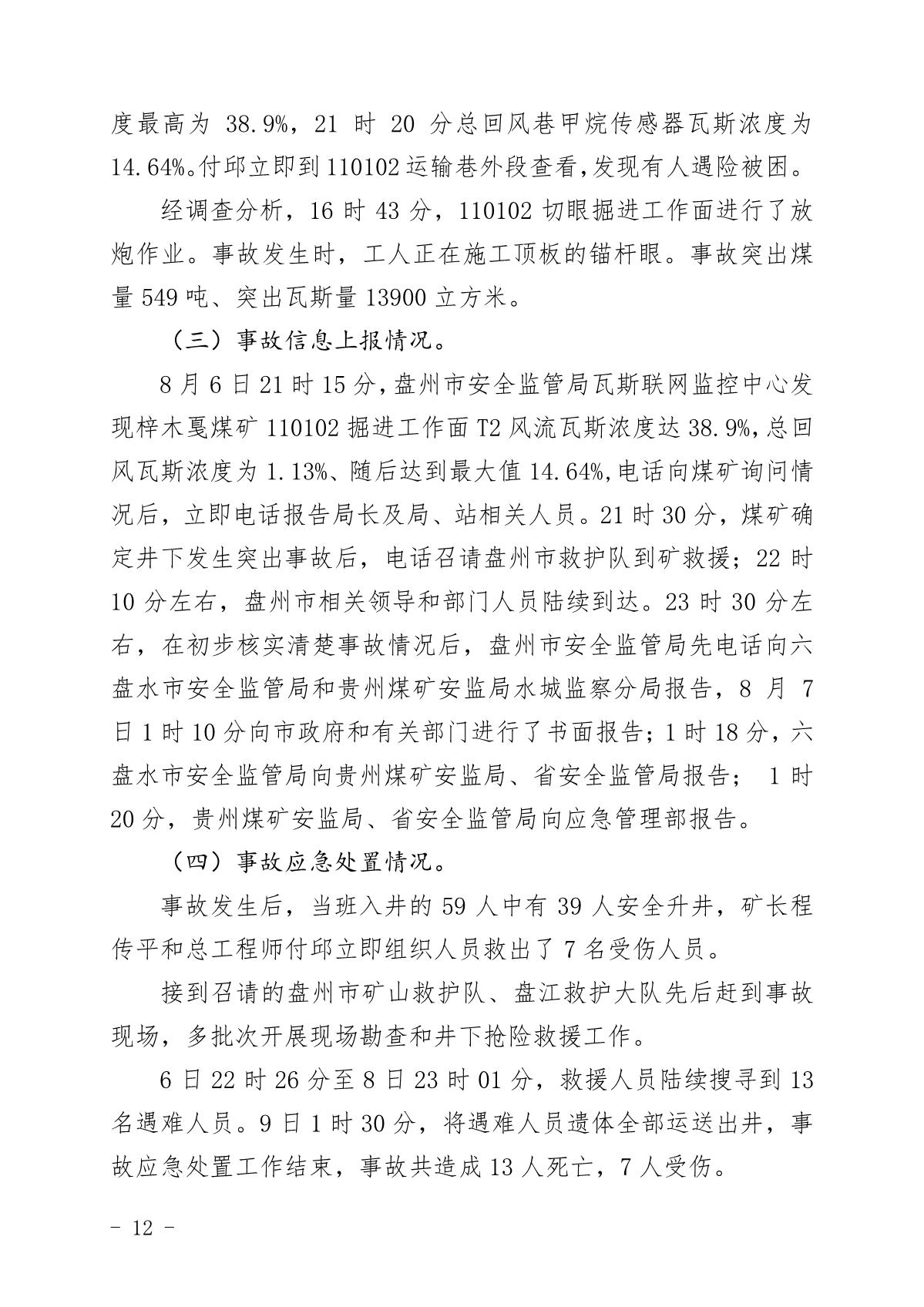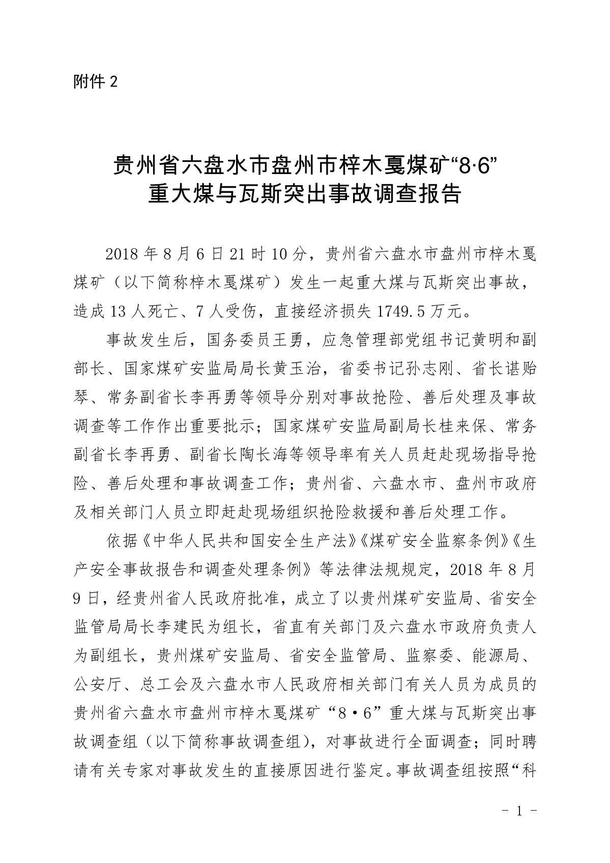 貴州六盤(pán)水梓木戛煤礦“8·6”重大煤與瓦斯突出事故調(diào)查報(bào)告
