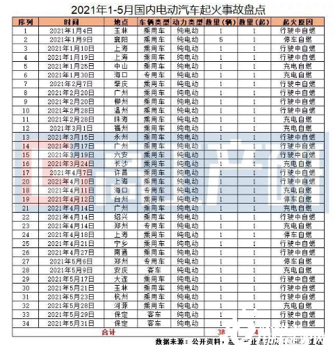 2021年1-5月國(guó)內(nèi)電動(dòng)汽車起火事故盤點(diǎn)