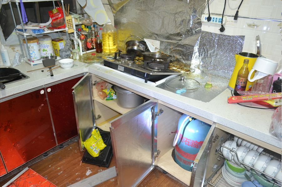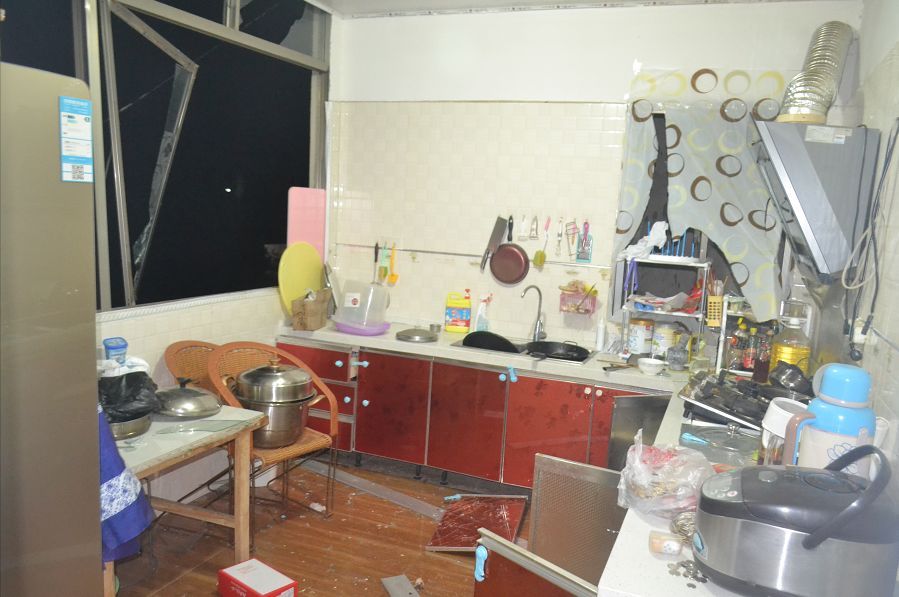 爆炸點(diǎn)位于新村鎮(zhèn)一村民楊某某家中的廚房,現(xiàn)場一片狼籍,窗戶也已經(jīng)飛出窗外。幸運(yùn)的是,爆炸發(fā)生時(shí)沒人在現(xiàn)場,未發(fā)生人員傷亡。