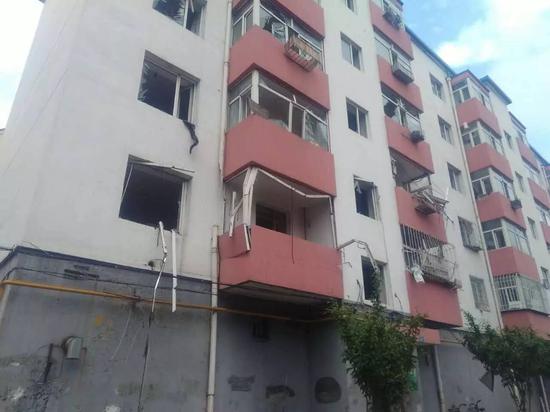 現(xiàn)場(chǎng)可以看到,此次爆炸的破壞威力較大,2-38號(hào)樓一單元共有10戶(hù)住宅,單從外表來(lái)看,已經(jīng)有7戶(hù)居民家的玻璃窗受損,周?chē)⒙渲罅康牟A槠踔劣行┎A槠搅藢?duì)面樓的墻體里。
